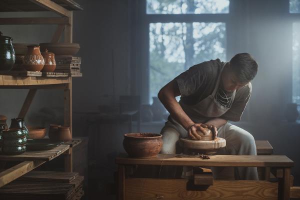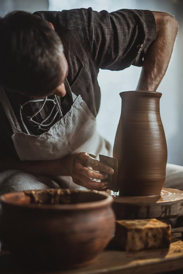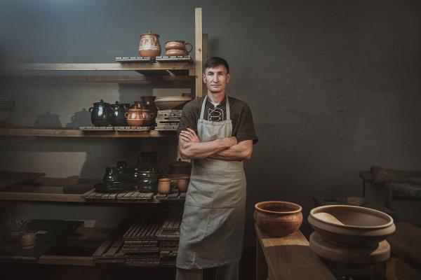 Deividas Jotautis is a passionate creator of traditional Lithuanian ceramics. For 30 years, he has been admiring the painted ornaments and forms that decorate classic Lithuanian ceramic cookware, finding a place for them in the contemporary world. After graduating from the Kaunas School of Applied Arts, he began working at the renowned Jiesia Fine Ceramics Factory in the household ceramics production workshop. It was there that he realised that the most important dimension for him in his work was creating items decorated with traditional Lithuanian ornaments. In 2013, Deividas' pieces were awarded the certificate of National Heritage Products. He participates in seminars and outdoor workshops in Lithuania and organises solo exhibitions of his works. He uses local raw materials to craft his ceramics.