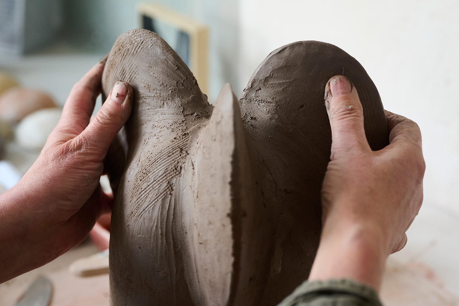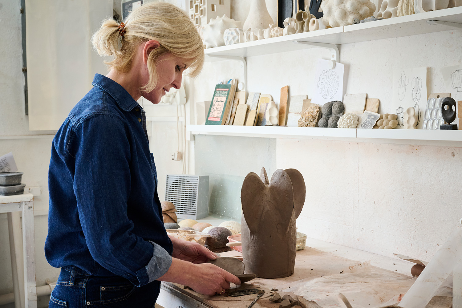 Spending a carefree childhood in Torquay, Devon cemented Julie Nelson’s bond to the sea. “I remember passing my days beach combing, observing the horizon, the relationship of the sea to the sky, the edges of the land constantly changing with the tides.” Encouraged by her parents to be creative, she completed a Bachelor of Arts (Hons) degree in Three-dimensional Design at Middlesex Polytechnic. “I tried furniture, glass, silversmithing and ceramics, which is the specialty I loved the most. I made very experimental, sculptural pieces at college, inspired by anatomy, time-worn surfaces, mixing metal with clay.” In the early 2000s, Julie settled down in Brighton, where she continues to probe nature’s patterns and processes in her studio ceramics.
