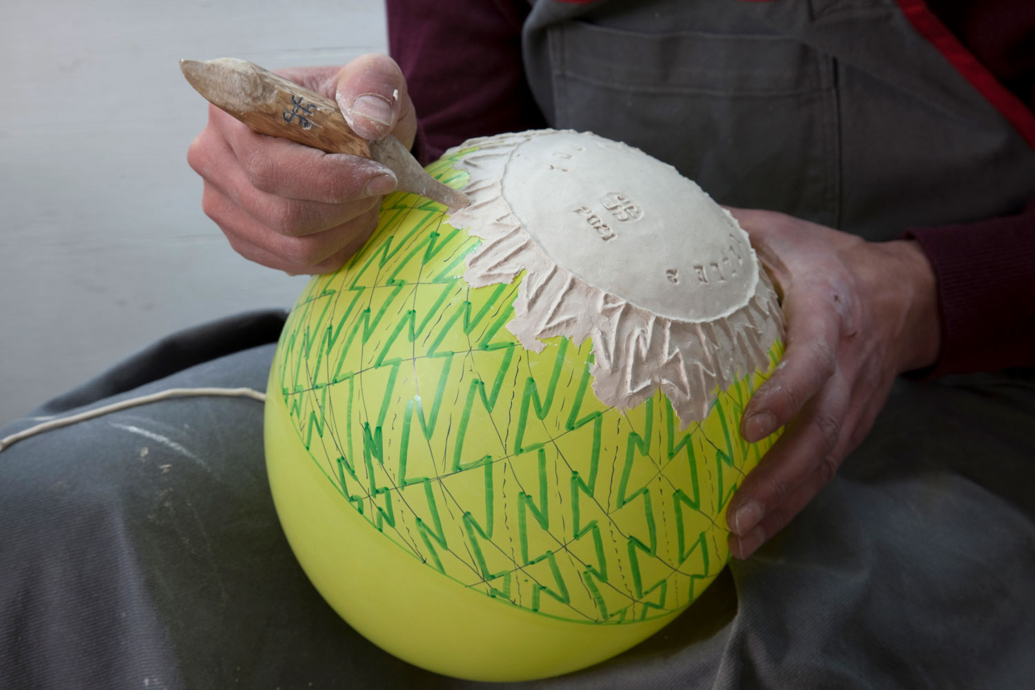 This workshop is an introduction to making wafer-thin bowls with flax reinforced porcelain on an inflated balloon, as well as discovering how to make a shrinking support on which the wafer-thin bowl can be hung. After starting the day by getting to know the material and learning how to make very thin pieces, Guy Van Leemput will demonstrate the techniques for applying patterns with the opportunity to practice yourself. Each participant will start a bowl with one or more of the demonstrated techniques while also making the swinging supports that will carry the piece in the kiln. You will then get to leave with your own bowl made during the day.