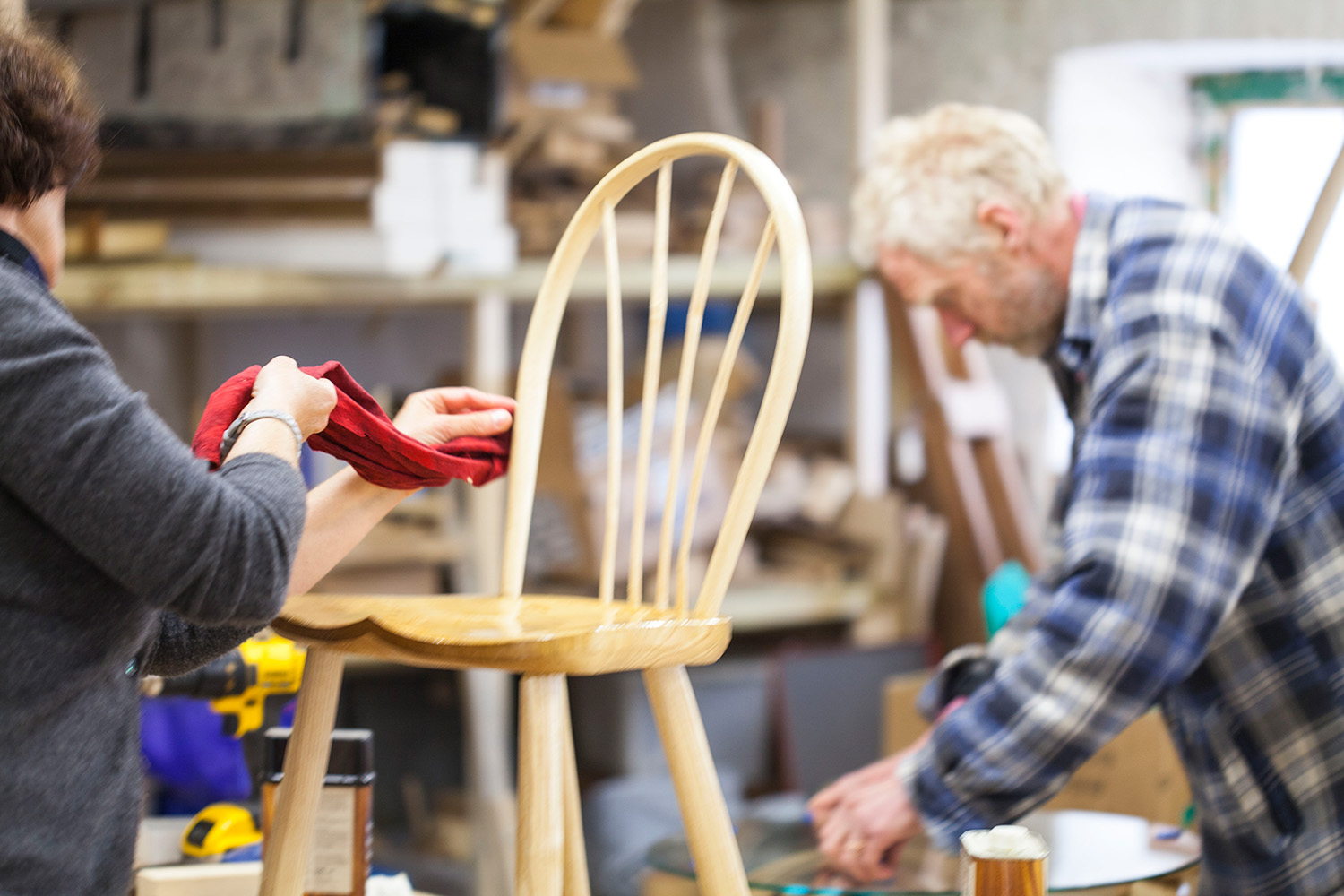 Furniture maker Peter Lanyon developed this chair making course for both beginners and intermediate learners to help them bring their greenwood project to life. During the course you will create a chair with a strong sculptural presence that uses the natural properties of greenwood to produce strong, glue-free joints. You will also learn how to accurately split wood with a froe and how to shape it using a draw knife and spoke shaves. To complete the chair, you will weave its seat using all natural materials. The course runs in two locations every year: at Peter’s studio in the UK and at the Cerdeira Home for Creativity in Portugal.