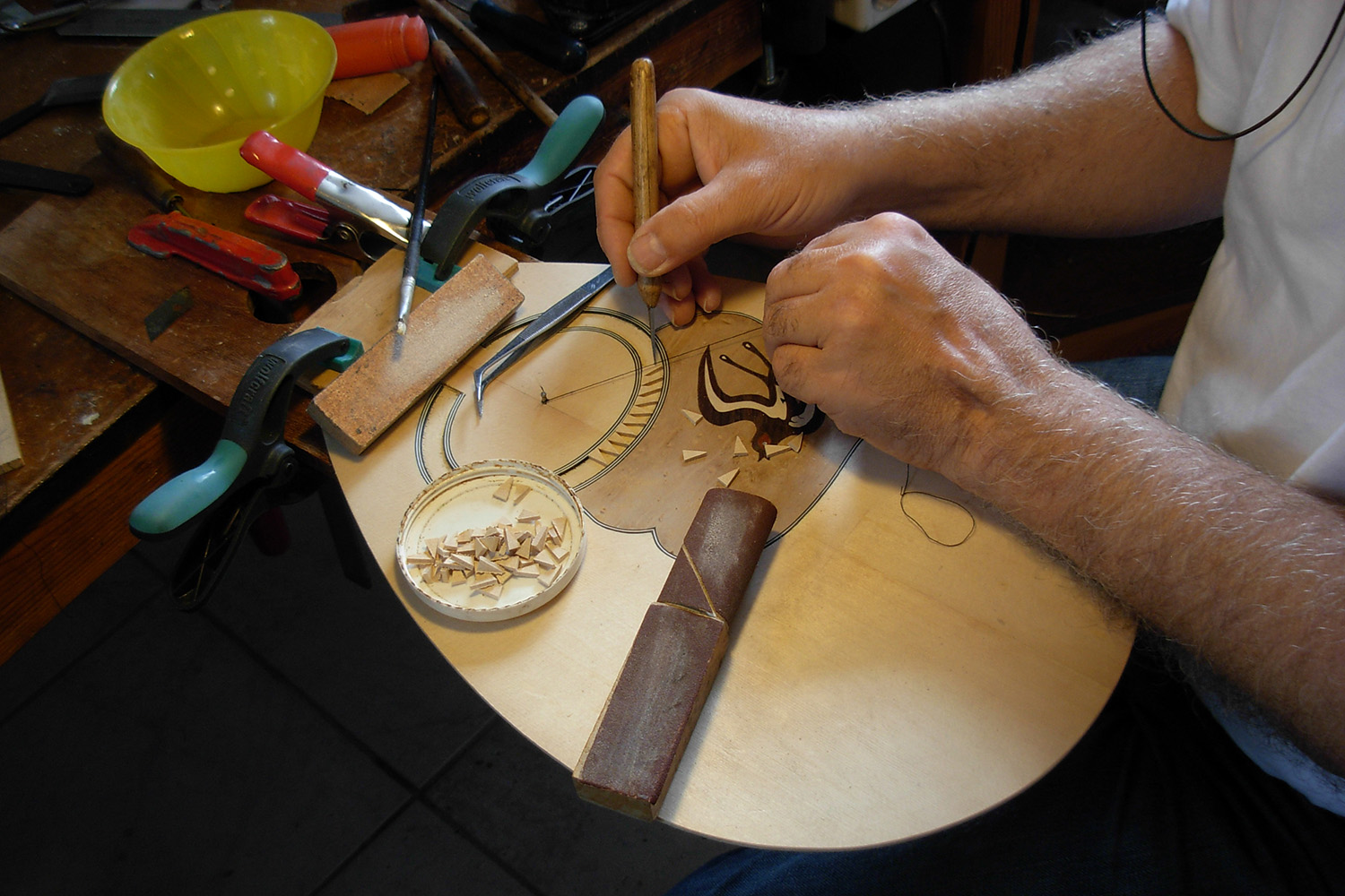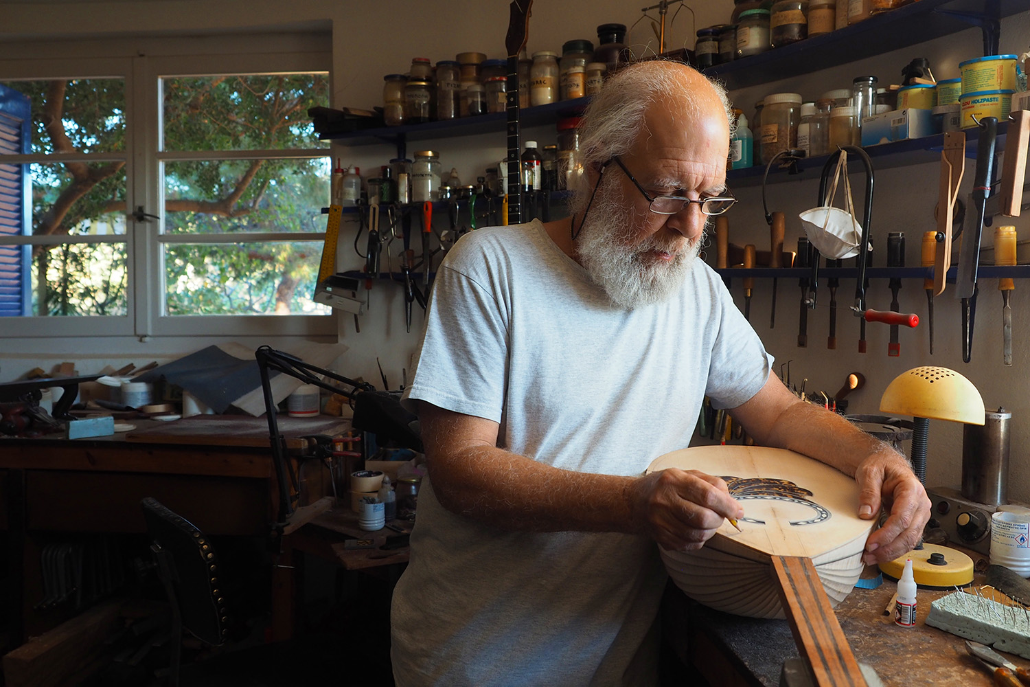 During a private guided tour, Nikos Fronimopoulos invites you to discover all the stages of making a traditional instrument. From the design of the model and the making of the mould, to the sound box, fingerboard, decorations, glue and varnish, the whole process will be covered. Nikos will also make a demonstration of powder tuning: a specific method used to visualise and test the vibration modes of the lid (Chladni patterns). This will be followed by a questions and answers session for any questions and queries. If the participants are eager to learn more, the discussion can be extended to the ethics and techniques of conserving antique musical instruments.