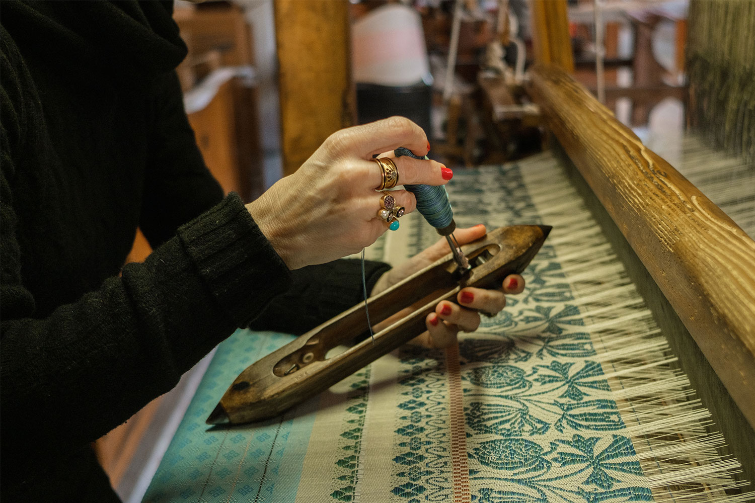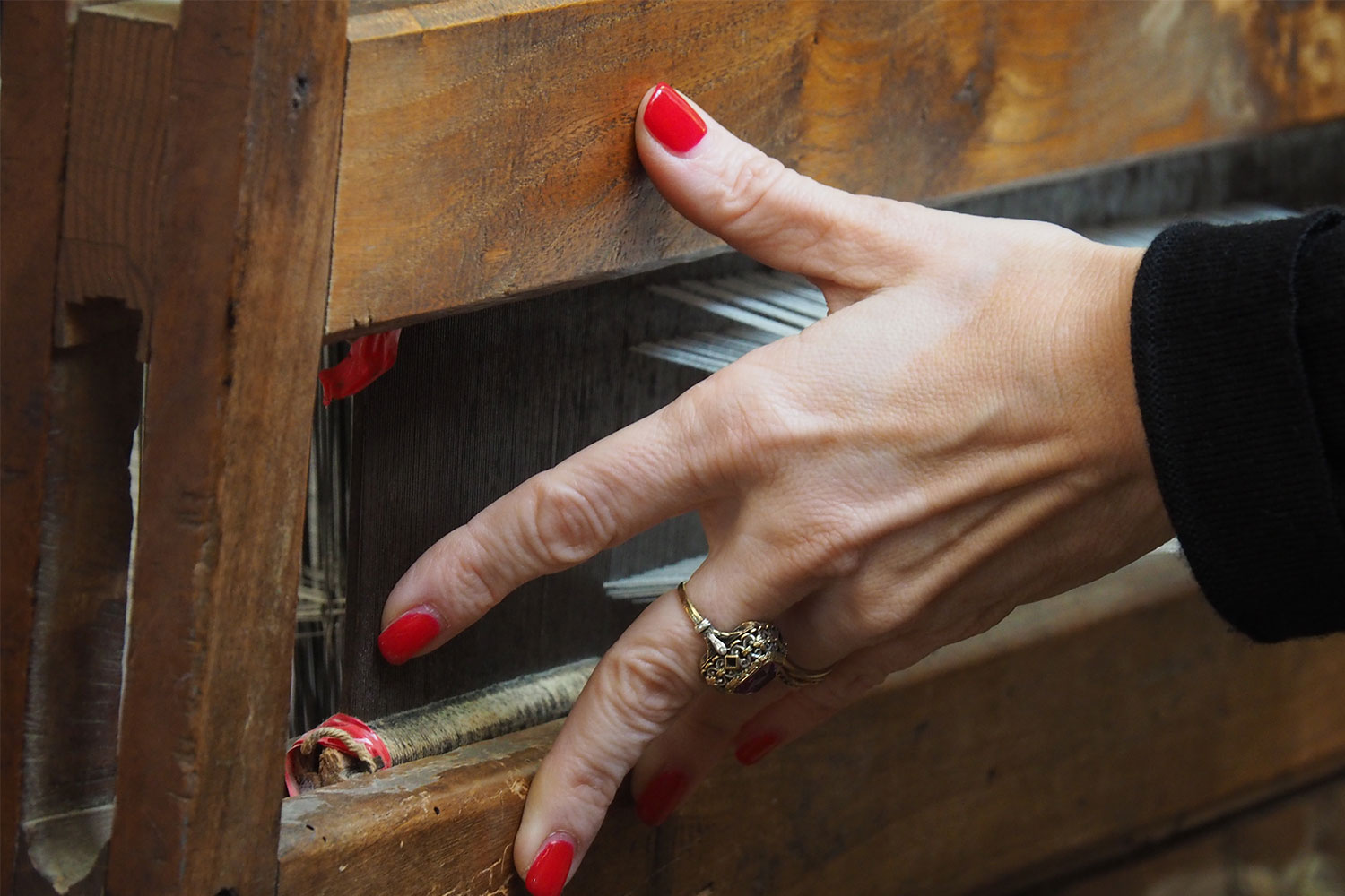 This course is designed for individuals interested in understanding the ancient art of hand weaving in Umbria. It is held inside the workshop itself using an original 18th-century loom. The basic course is for those who have no weaving experience, and will introduce participants to basic weaving techniques. Topics covered during the day include the history of Umbrian weaving, dressing the loom, working with different patterns on original pedal and jacquard looms, and the preparation of card designs for jacquard looms. At the end of the day participants will take home the fabric they have created with their own hands.