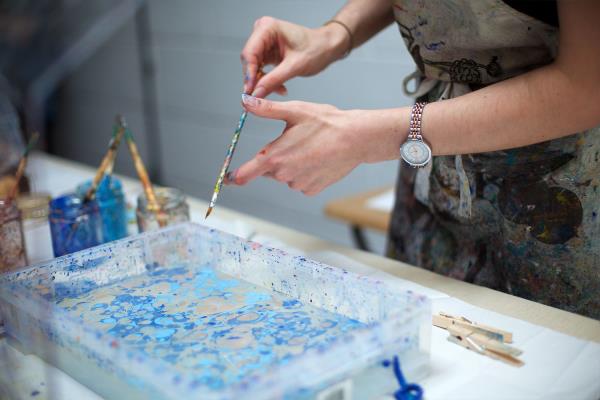 Paper marbling is a centuries-old decorative technique where paint is floated on thickened water and manipulated with various tools to create striking designs that are then transferred to paper. Used for books, stationery and furniture lining, marbled paper was once a huge industry in the UK, but these days so few people are masters of paper marbling that it is considered a rare craft. Lucy McGrath is one of the few British artisans giving this art a future. In this fun, creative workshop for beginners held in her small London studio, Lucy will teach participants the basics of paper marbling, showing them how to set up the marbling bath with thickened water, prepare the paper and use a range of techniques to control the behaviour of paint and create patterns. Each participant will come away with 7-8 pieces of marbled paper, which they can opt to have made into a beautiful hand bound notebook for an extra cost. A rewarding, cathartic and addictive experience for anyone who enjoys being creative.