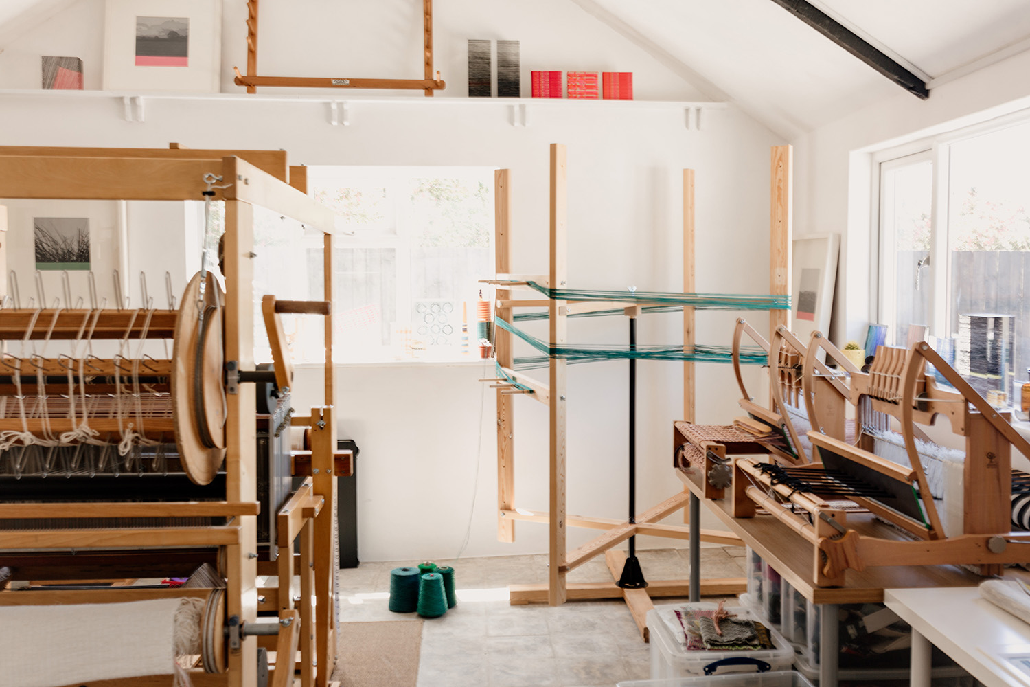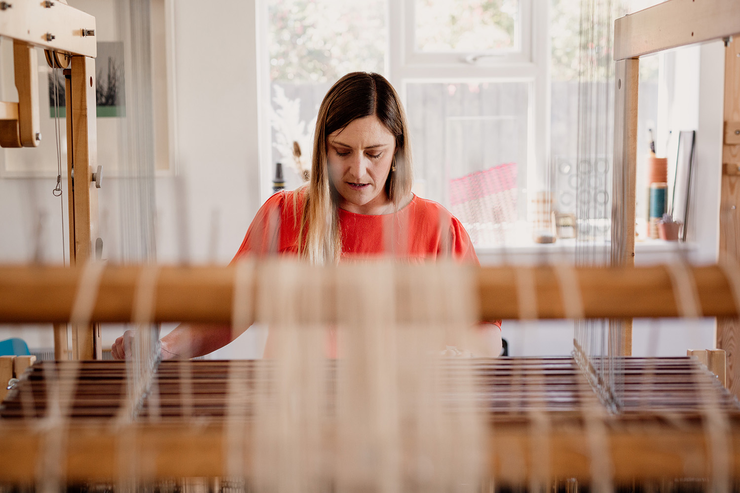 Laura Thomas is a British textile artist who has been teaching the art of weaving for more than 20 years. Her decorative art pieces for both interiors and exteriors celebrate the beauty of the yarn through different techniques and a combination of common and unconventional materials. In her studio in South Wales, Laura organises introductory workshops to table loom weaving for small groups of beginners. Good manual dexterity is the only pre-requisite to join. Participants are taught basic weave structures and hand manipulation techniques as well as encouraged to experiment with a variety of weft yarns in many fibres, textures and colours.