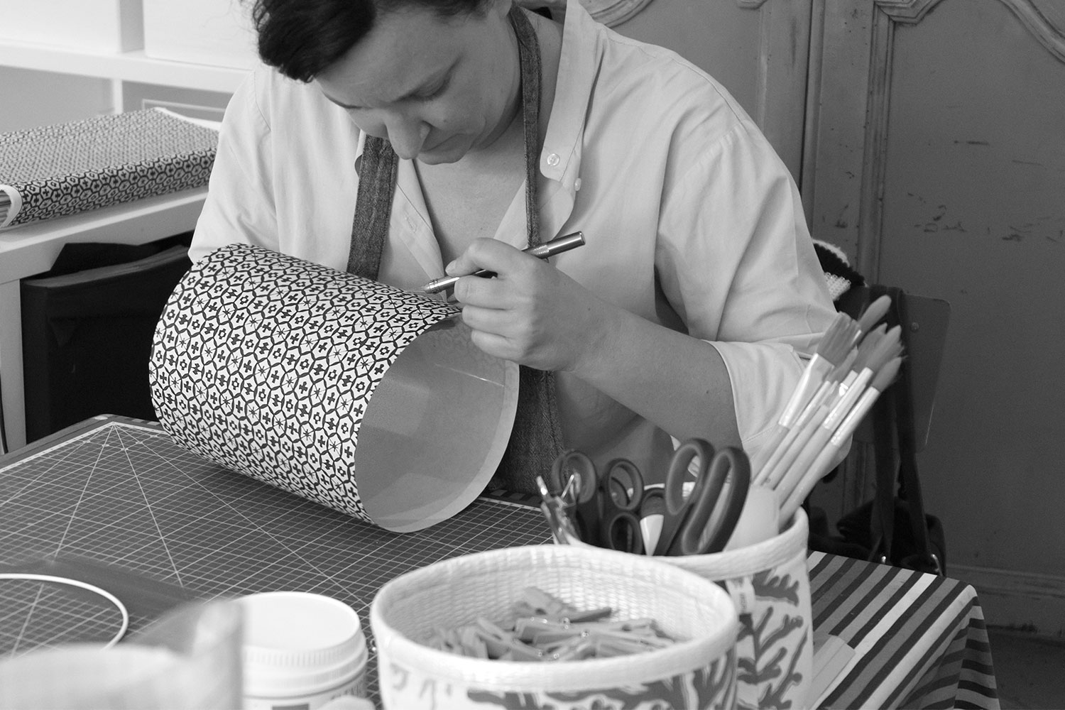 Paper has been used for many centuries all over the world in many different ways. In crafts, although getting rarer, paper remains present. Lampshade making, an endangered craft, is the art of detail-oriented work with paper, giving lighting a customised new dimension. If you are looking to give your home a tailor-made and exclusive touch, this is the course for you. With the help of French lampshade maker Sophie Fourmaux, who works with laminated lampshades, you will make a classic lampshade (cylinder or conical) or a custom-made lampshade in the shape of your choice for a specific lamp base you have at home. The material is included in the price.