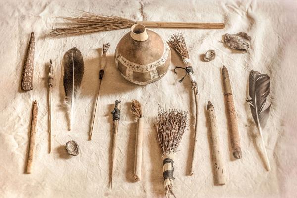 This workshop aims to familiarise participants with the creative process of handwriting, the drawing tools made of natural materials and the mindful creation of the letter. It takes place at the artist’s studio, with an inspiring view, and includes learning of the ancient writing methods. Participants, guided by artist Irini Gonou, will first collect natural materials during an exploratory walk in the nearby nature. Back in the studio, they will create tools made out of the collected materials and then focus on drawing letters; they will learn how to reproduce mindfully ancient alphabets with walnut ink or other natural handmade inks.