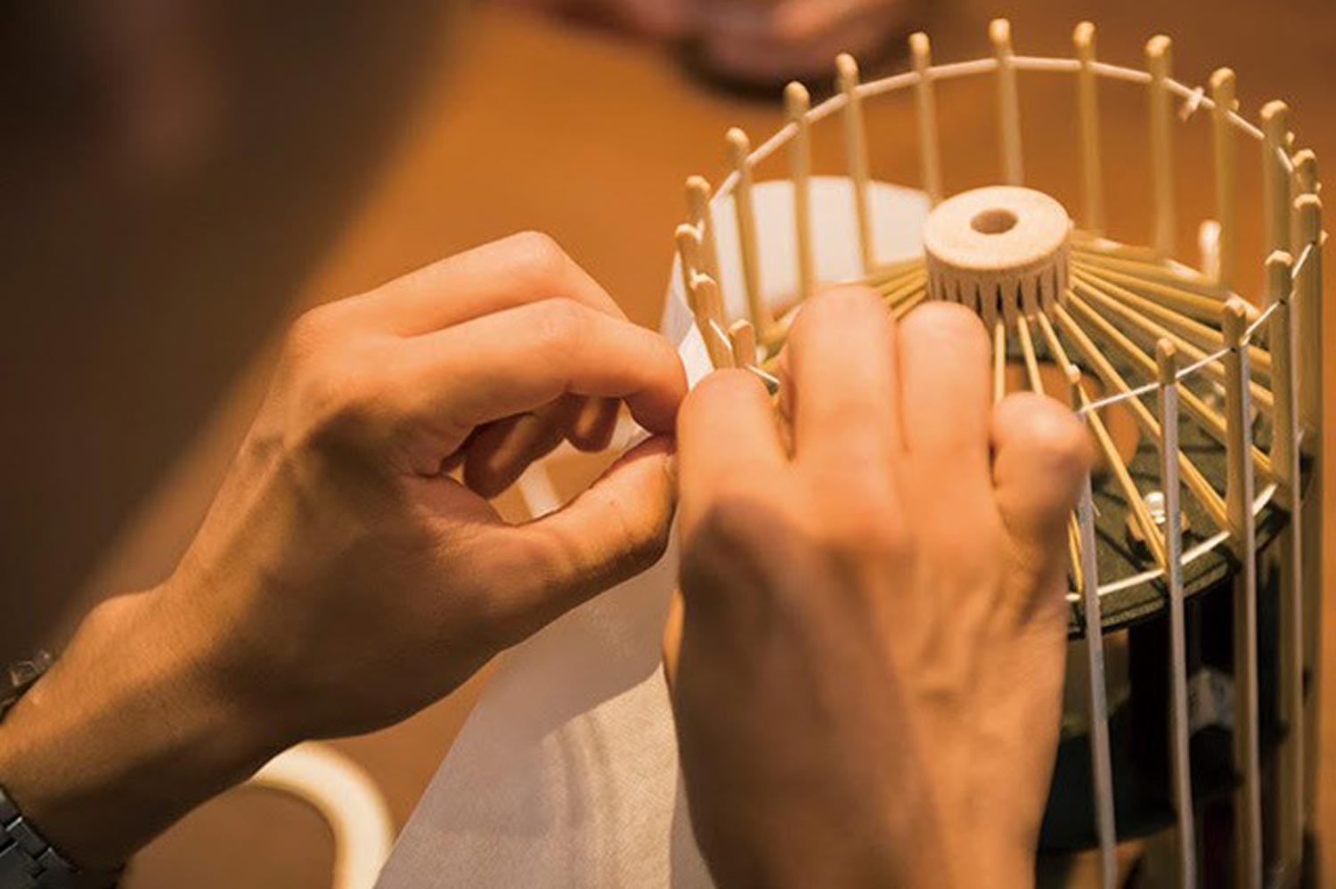 Create a one-of-a-kind, compact lampshade inspired by the design of traditional Japanese umbrellas. Located just north of the Imperial Palace, Hiyoshiya provides a rare opportunity to learn first-hand about this ancient craft. Widely used for hundreds of years, umbrellas made of bamboo and washi paper continue to face declining demand in Japan’s modern age. These stylish kotori lampshades are just one example of Hiyoshiya’s approach to passing down tradition through the process of innovation, developing products that stay true to the essence of their craft while meeting the needs of the present.