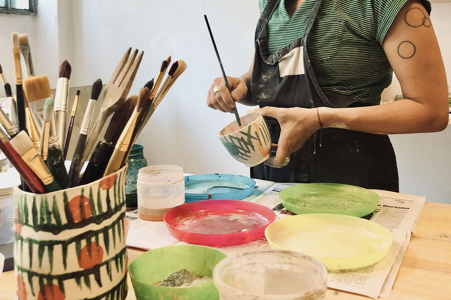 Caterina Amato holds courses on Saturdays in her studio situated near the Naviglio Martesana. Participants are introduced to three shaping techniques (snail, plate and pinch) and three different decorations (underglaze, glaze, and high fire glaze), with three different clays (Italian white earthenware, semi-refractory clay and stoneware). Courses in the morning are accompanied by tea and biscuits, in the afternoon they are followed by an aperitivo. Prices include materials and firing. Participants are not required to attend all four days. A 2-hour participation option is available at a cost of 48 EUR per day.