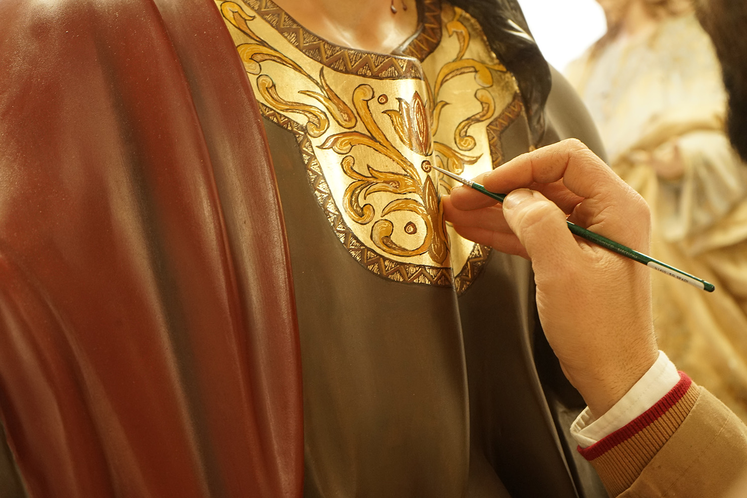 In this five-day seminar, sculptor Jesús Manuel Romero Hernández will explain the different types of sculptures, materials and techniques he uses, as well as present modelling and polychrome decoration techniques. He will describe metal gilding, stewing, and imitation patinas. In parallel to this theoretical presentation, participants will also start to create a small clay figure from scratch. It will be fired in the workshop's kiln. The decoration of the figure will follow. At the end of this course, attendees will be able to take their pieces home with them, along with a certificate of completion. The course is run as 4 hours of tuition each day, for 5 days.