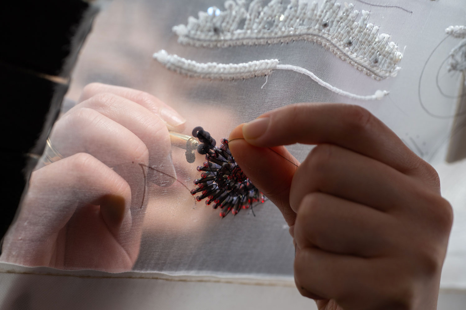 Bring patience and optimism with you to this masterclass, where you will learn the meticulous craft of tambour embroidery. This technique, which emerged in France in the early 19th century, involves decorating a fine tulle cloth with chain stitch. It is often referred to as embroidered net lace. In these beginner lessons you will go through all stages of the creative process, from leaning to use a tambour hook and trying your hand at decorative chain stitch to completing your own small piece of embroidery. The class consists of two eight-hour sessions. Please contact Nadya in advance to choose convenient days. By appointment only.