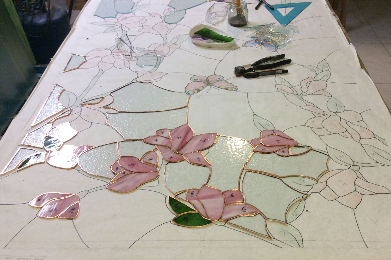Learn how to make a stained glass panel to keep (shipping charges not included) on this beginners' course. After deciding the subject of the panel, the project unfolds first by sketching the design on paper, then by choosing the pieces of glass and finishing them with a diamond wheel. Each piece of glass is then coated with special copper tape and the assembled stained glass panel is finally tin soldered. The course is for individual participants and stretches over three days, to be agreed upon with the master glassmaker. The price includes all materials.