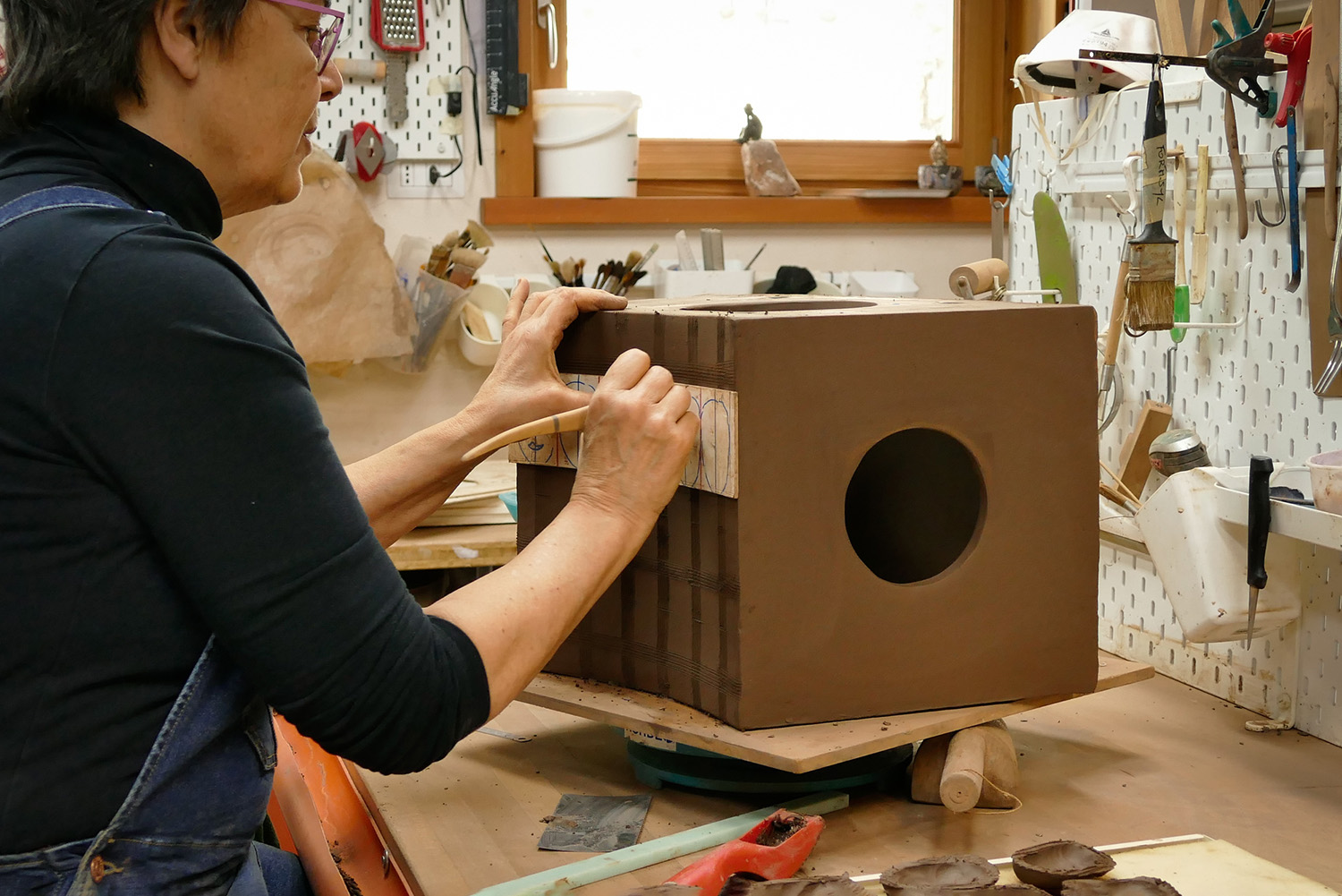 Claudia von Boch has been a professional ceramicist since 1999. She offers studio visits for groups of 3-6 people that include a real-life demonstration, where the artist explains how she developed her technique using recycled ceramic waste. The result is sculptures and one-of-a-kind objects inspired by mountain and rock formations. Their making involves processes similar to those found in geological strata formation. Visits are free and can be organised through reservation, in French, English, Italian and Spanish.