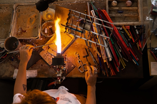 The technique used by Caterina Zucchi to create her Murano glass jewels was widely practised in Venice in the 14th century. Unlike glass furnaces in which several craftspeople work together, lampworking is characterised by the fact that the artisan works alone, using just the flame of a torch. After an introduction to the history of glass, Caterina demonstrates how she creates a bead in both solid and blown glass, using strictly Murano glass, which melts at low temperatures and cools slowly, allowing time to shape it by hand. The jewels can be purchased in the studio after the visit. Children are welcome when accompanied by an adult.