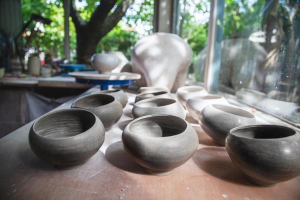 Learn to use a potter’s wheel in seven easy steps with Helen Green in the South of France. In a day you will learn the basics of throwing, which will then allow you to practise on your own, keeping in mind that it takes many hours of practice to succeed. The basics include preparing the clay, centering, opening the dome and raising walls, shaping the object, finishing touches, and last but not least breathing and a good posture. At the end of a day, you will have turned several cylinders and bowls which can then be fired. The price includes the clay and the first firing. For 6 hours of private tuition, Helen charges a special price of 240 euros.