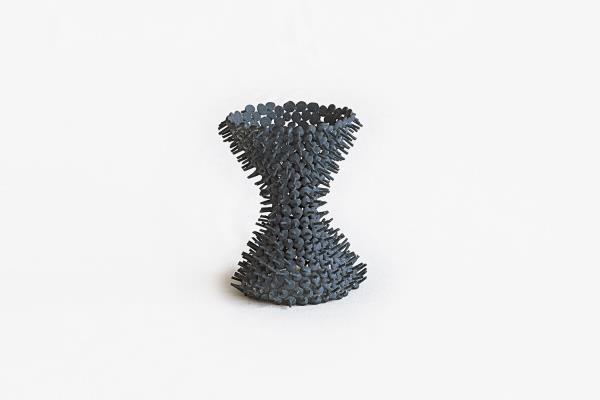 This bowl has been cast from sterling silver. As with many of Ludwig Menzel's pieces, it serves both a functional and decorative purpose, with its sculptural, puzzle-like surface.