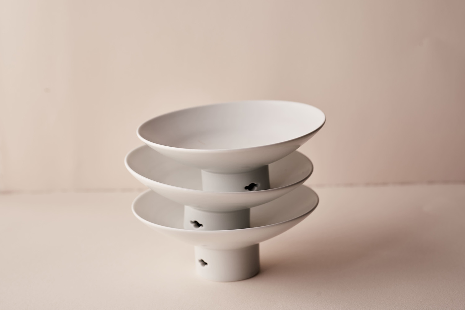 Changi is used to serve side dishes at the Korean table. This set was moulded on a pottery wheel, and then shaped by hand. The traditional cloud pattern was engraved on the lower part using an openwork technique.