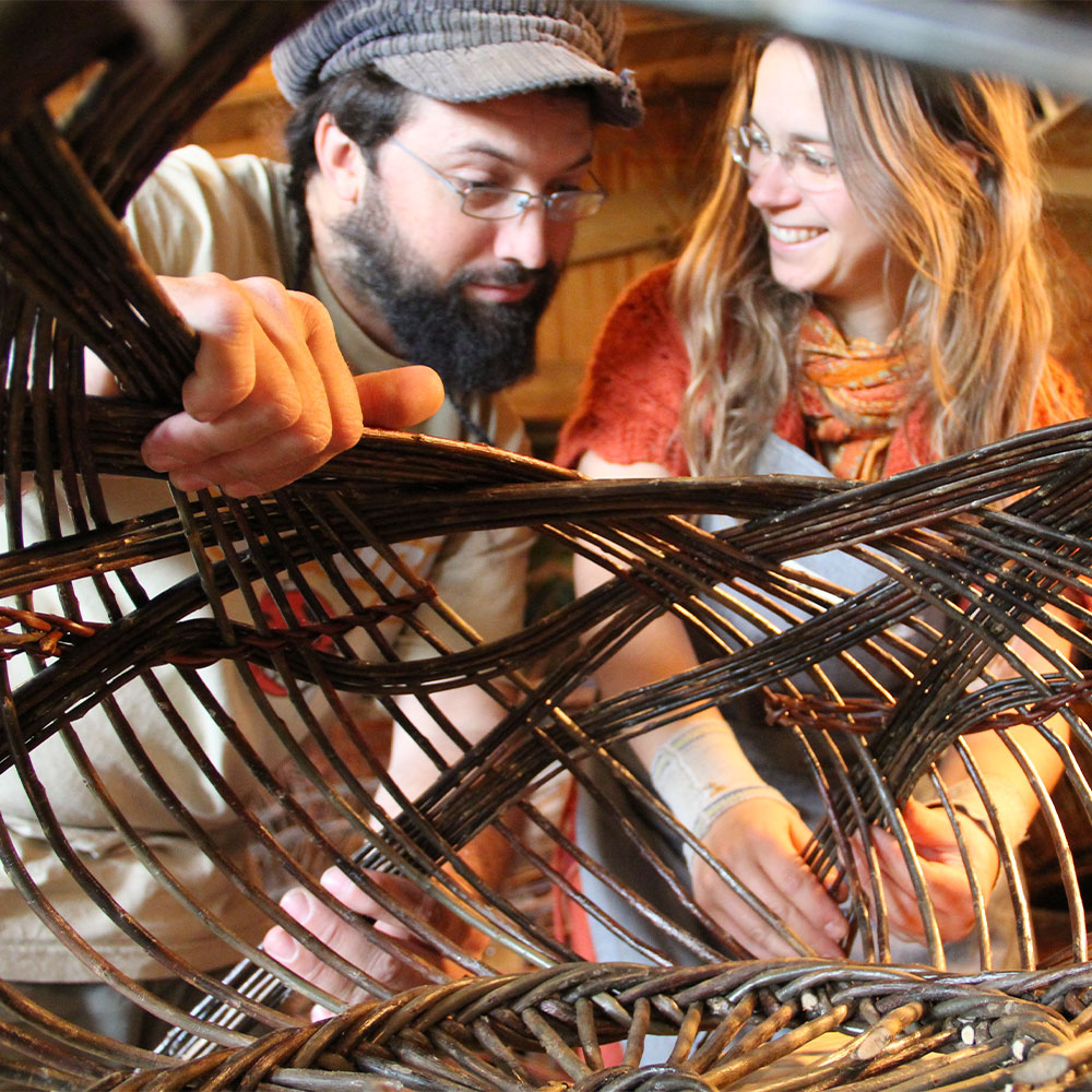 In this creation, Anfractuosité (which translates as 'crevice'), the willow weaving focuses on the material to shape forms with different reliefs that remind us of Rocky Mountains with soft cavities. It is made of raw willow, in a tight weave. This piece was made jointly by Karen and Corentin.