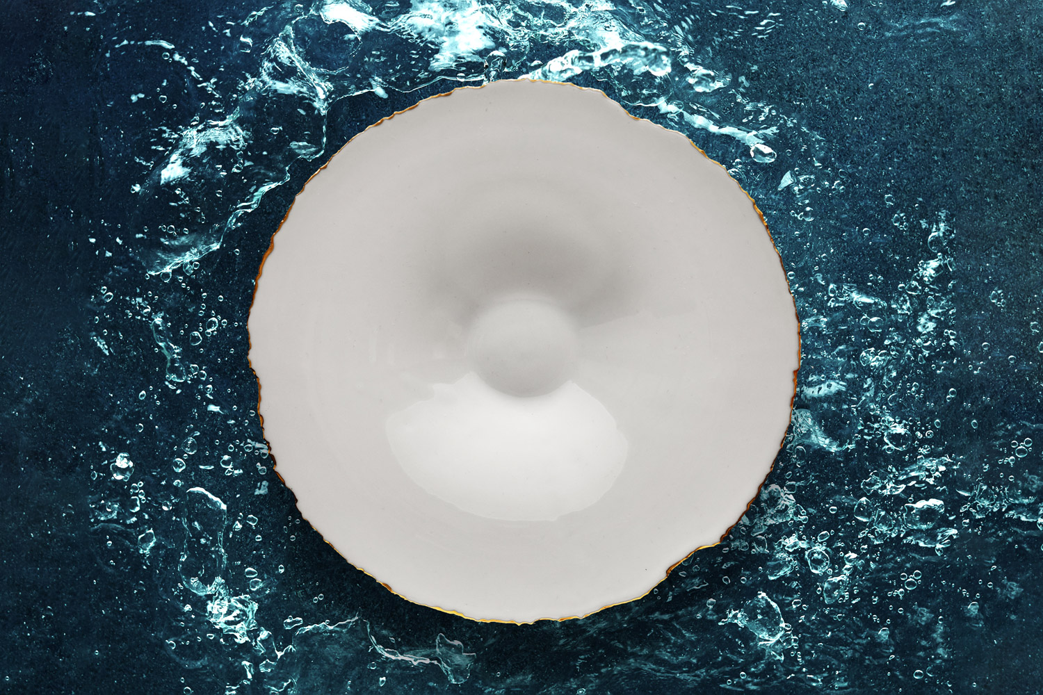 The restaurant who commissioned this elegant set of plates is located in Menton, on the Cote d'Azur of France, right on the edge of the Mediterranean Sea. The design was inspired by the cut-outs of the precious coast.