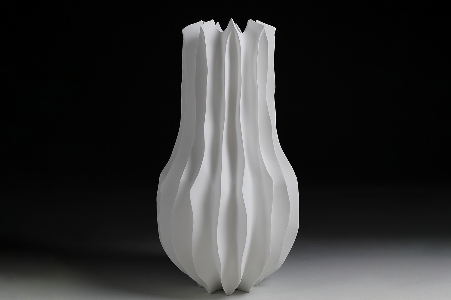 Turned and carved from beech wood, this sculpture is in the shape of a hollowed squash.