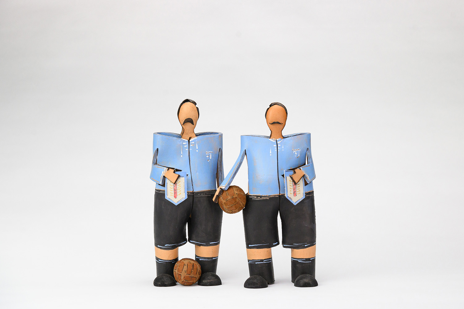 These two footballer figures are made of moulded leather, softened with water and heat. The football tradition is deeply rooted and dear to the Uruguayan people.