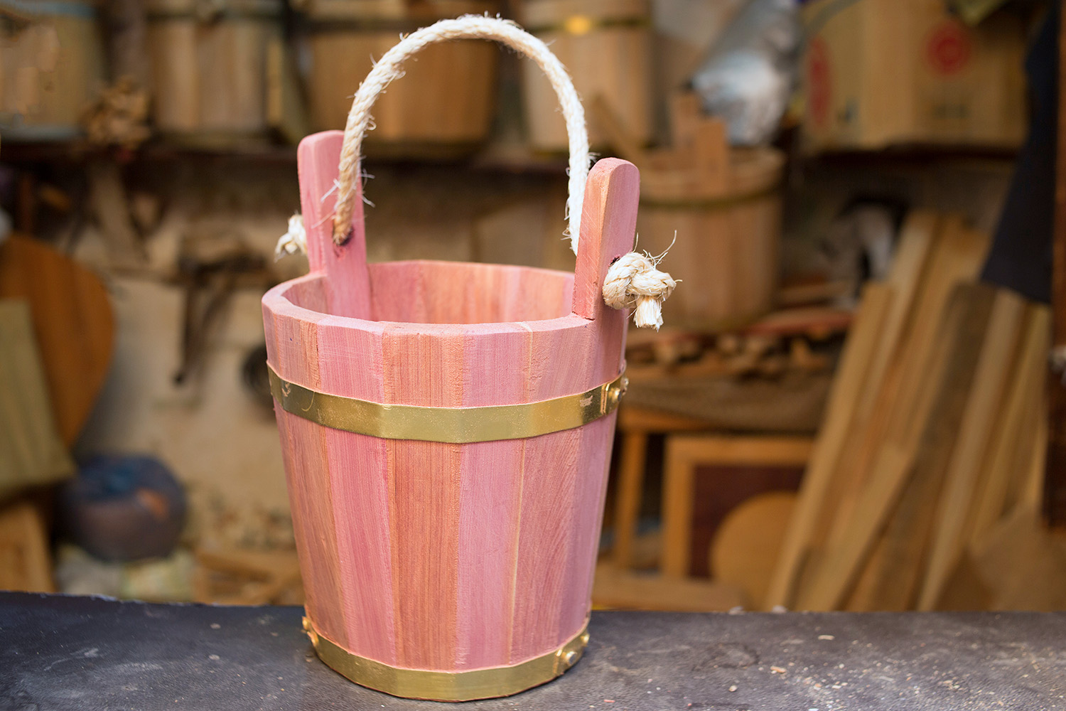 Although very typical of Moroccan culture, this type of bucket has become hard to find these days. Very few artisans are still able to manufacture them in the traditional way. Approximately 15 cm high with a 9 cm diameter, this wooden bucket, bound with copper bands is used in hammams to pour hot water.
