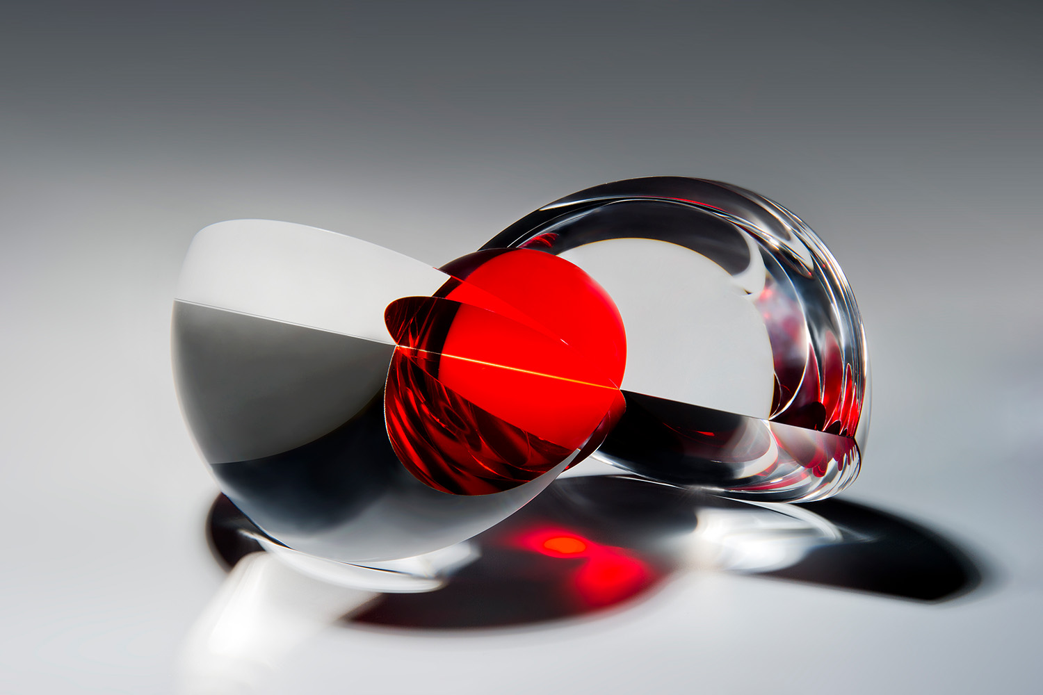 Annulum is an offshoot of the word ‘annulus' which refers to a ring-shaped object, structure, or region. Annulum is a refractive sculpture comprised of four separate elements. The two clear segments have been offset against each other and then counterbalanced using a central core made from coloured optical glass.