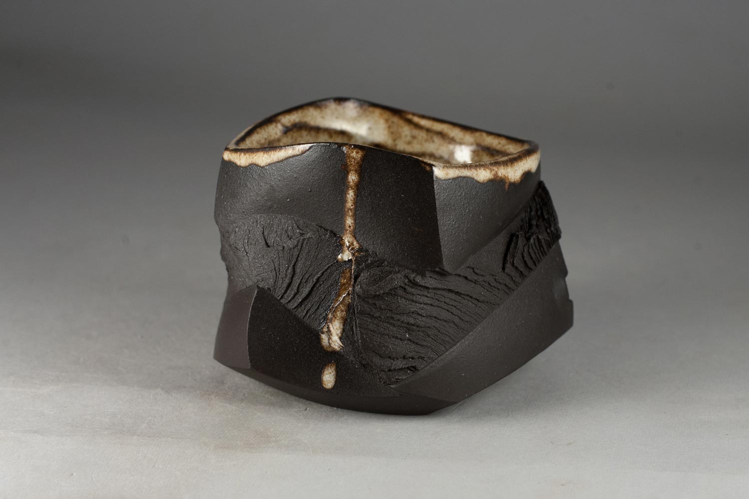 The Discovery cup is made of black clay with parts covered in white glaze. The object is created using the special Discovery technique following the electric firing process.