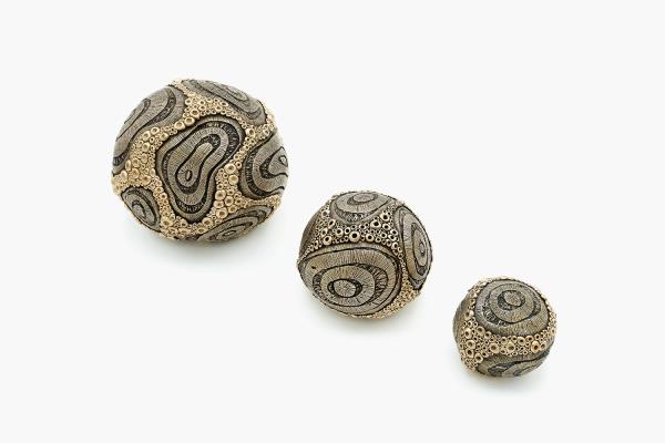 This set of three sculptures is made of patinated bronze. They represent seeds germinating.