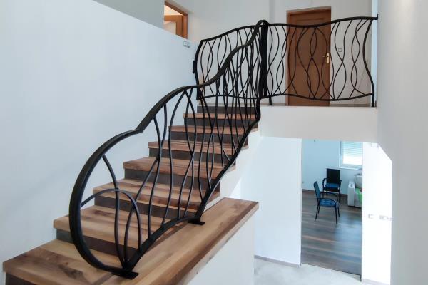 This black hand forged railing with a modern design was made as a commission. Alen Marić made it using traditional blacksmithing techniques.