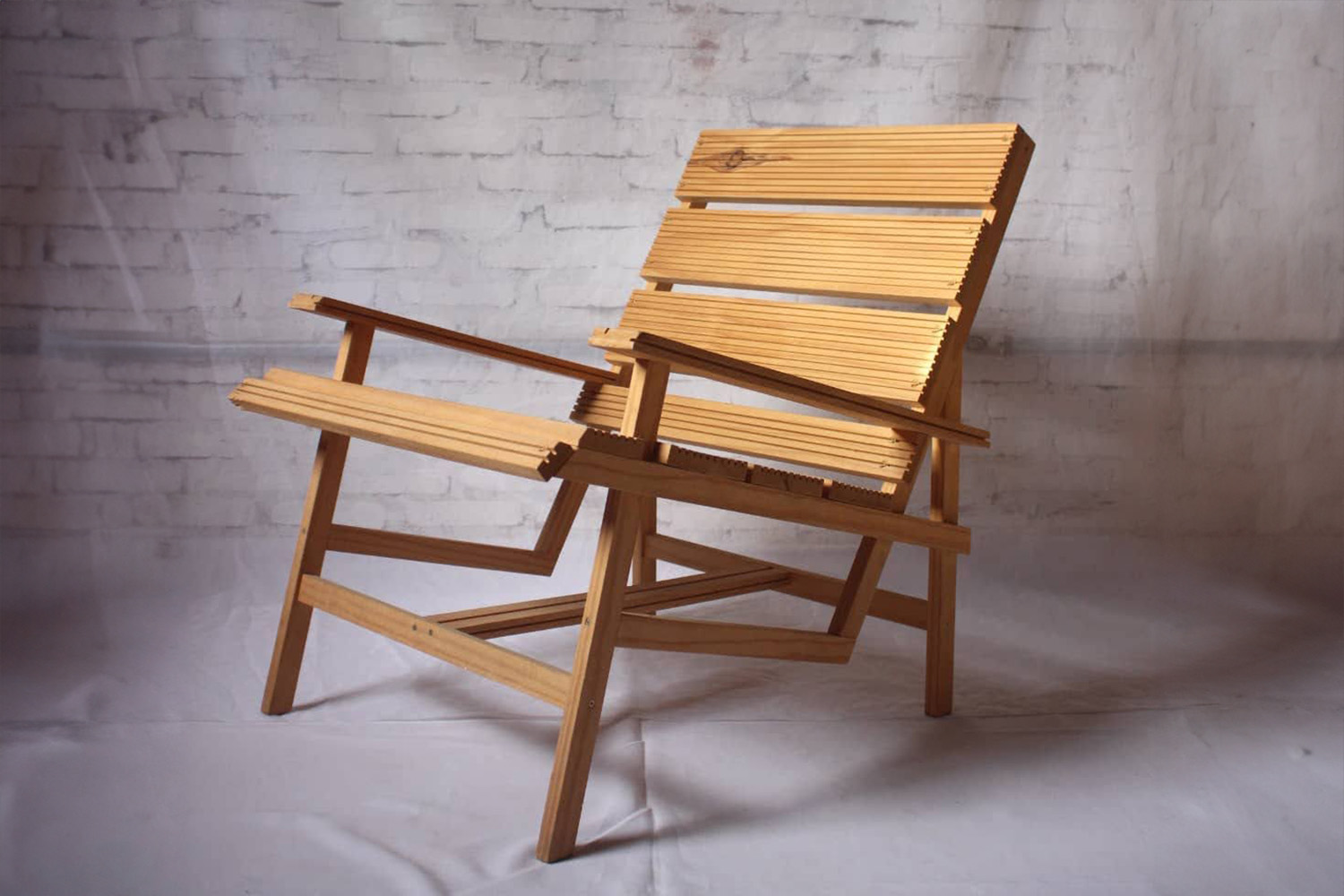 The Serra armchair was developed in light brown solid pine wood with a minimalist straight-line structure. Small cracks in the ergonomic seat, back and side arms were designed to ensure a feeling of relaxation when in use. The design is inspired by rationalist architecture.