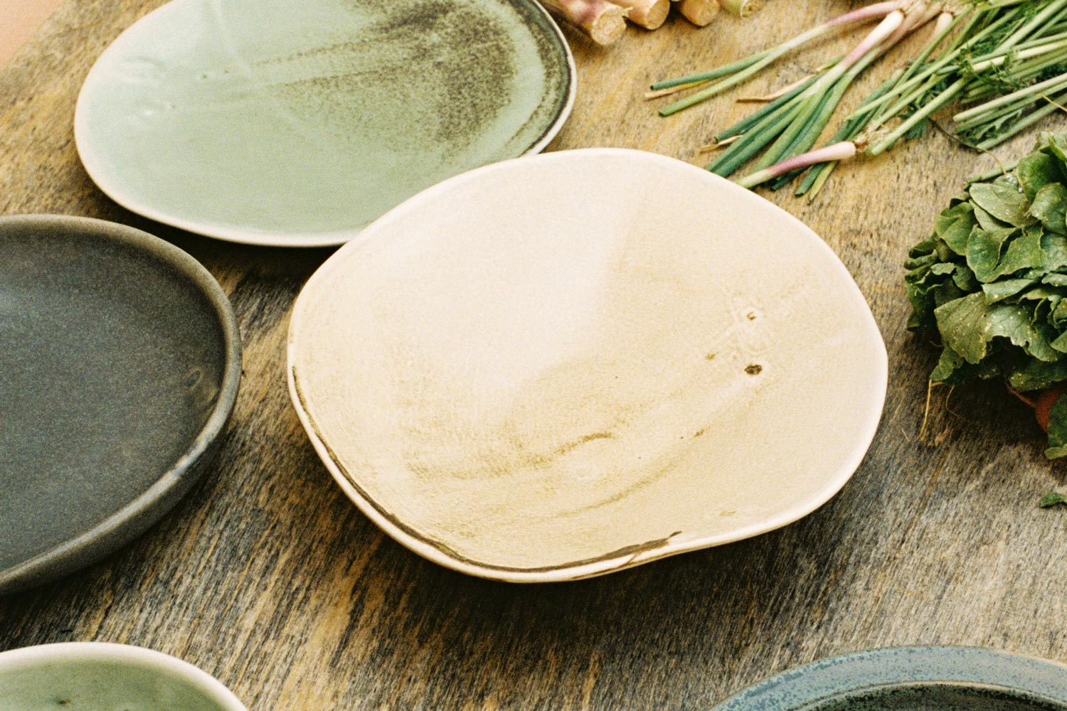 Diego and Nacho Sampere's tableware is inspired by the Mediterranean. Their main collections reflect the typical colours of the local landscape: stone grey, earthly ochre and aqua green. Born to support the experience transmitted by chefs and restaurant, their pieces are designed and produced in La Bisbal d'Empordà with stoneware of the highest quality.