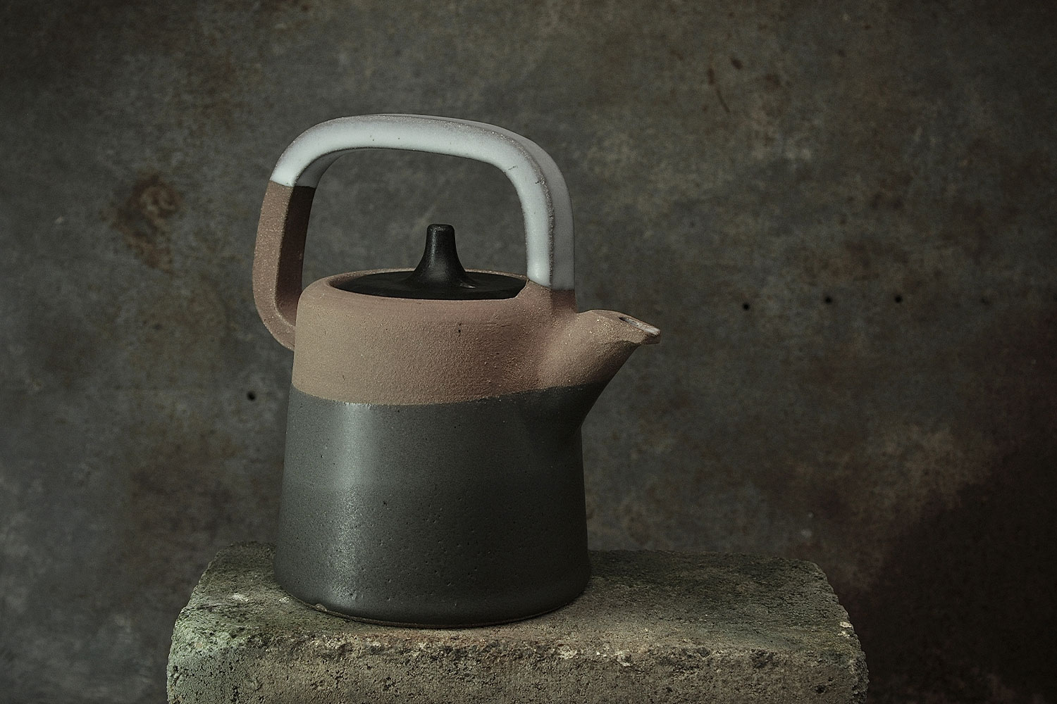 This ceramic teapot is made on a potter's wheel and covered in different types of glazes. The earthenware teapot is fired at a high temperature. The individual parts of the teapot are moulded by hand.
