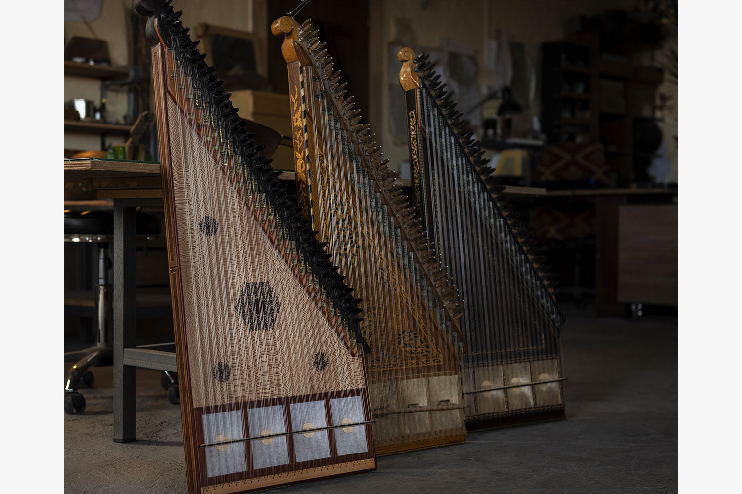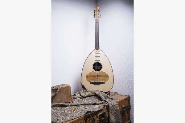 This string instrument is played in Turkish, Greek and Arabic traditional music. It generally features 26 courses of strings, with three strings per course. The name derives from the Arabic word qanun, meaning "rule, law, norm, principle", which is borrowed from the ancient Greek word and musical instrument κανών (rule).