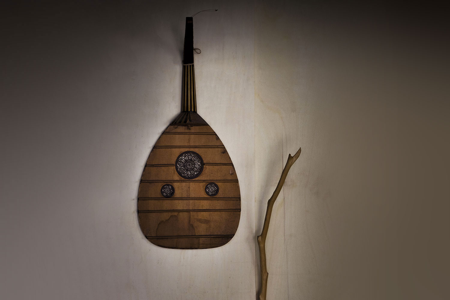 This old oud top has been removed from the instrument's body and – after restoration – it will be glued again. The quality of the wood, from which the instrument is made, is of great importance to its sound. The wood must be solid and sourced from slow growing trees.