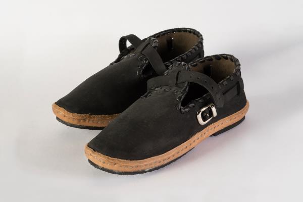 These traditional male sandals (opanak) have origins in the Croatian region of Lika. The sandals are made of rolled leather strings that are pre-soaked in water. These shoes are intended for dry weather.