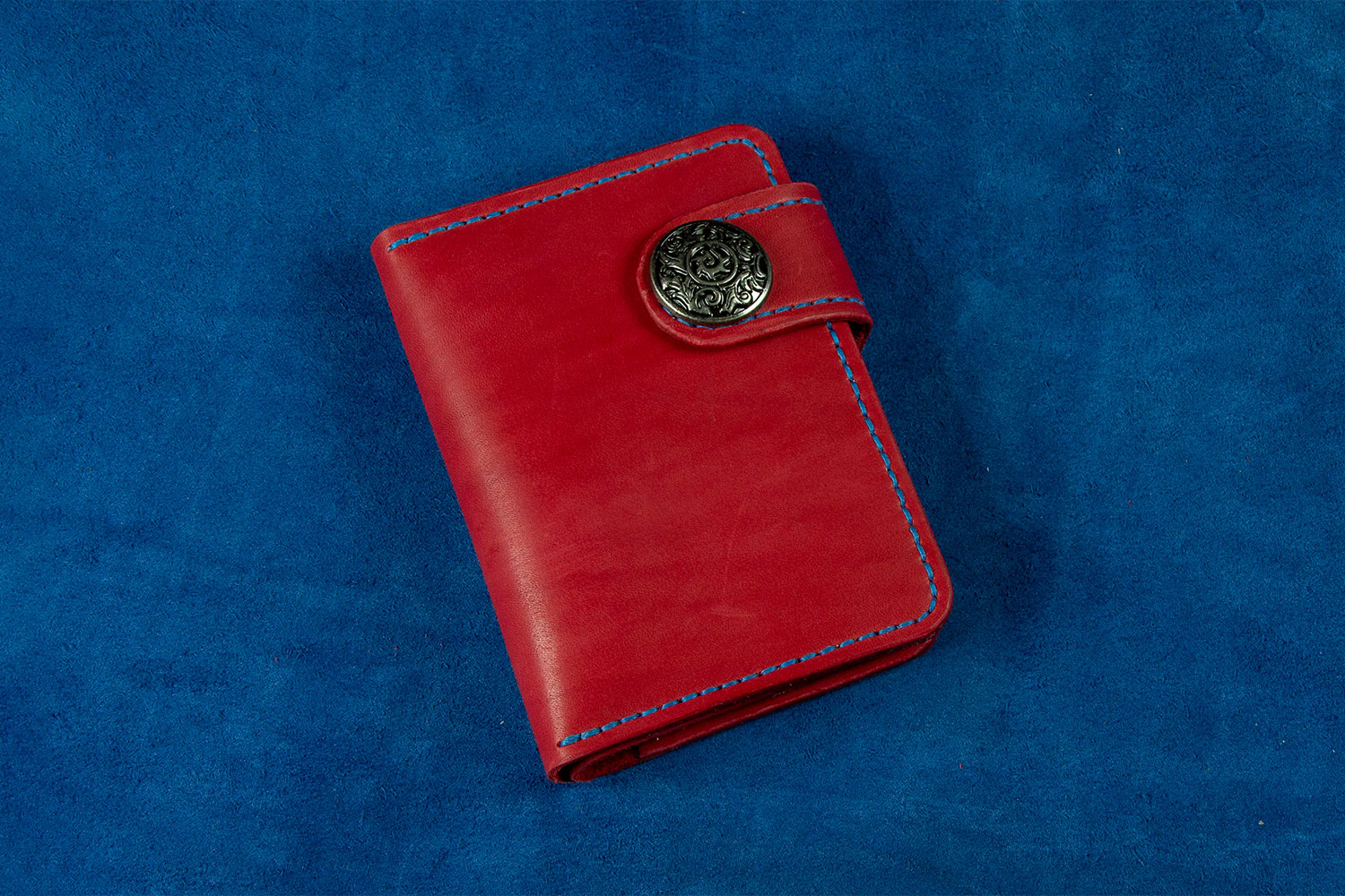 Crust leather wallet, hand-stitched with a waxed thread. This elegant red leather wallet can hold money, cards, receipts, passport and other documents.