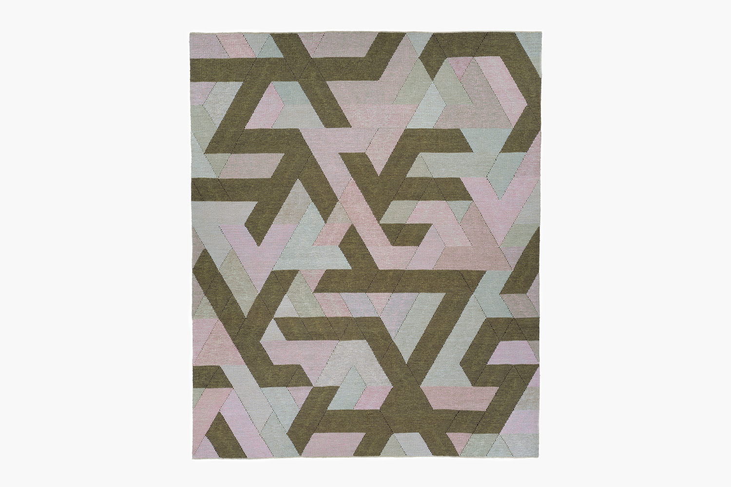 This rug is handwoven from hand dyed Norwegian spelsau wool on a linen warp. In the city of Salalah in the south of Oman, the Sultan has a palace with a variety of palm trees that are not found anywhere else in Oman. The palms have a slender grey trunk with a dark brown line running through it. In this hot, tropical climate, even a pastel grey can seem radiant.