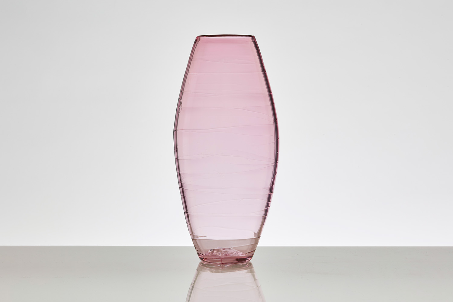 This is a decorative and functional glass vase in a magnolia colour. It features Michael Ruh's delicate signature of lines spun around the inside.