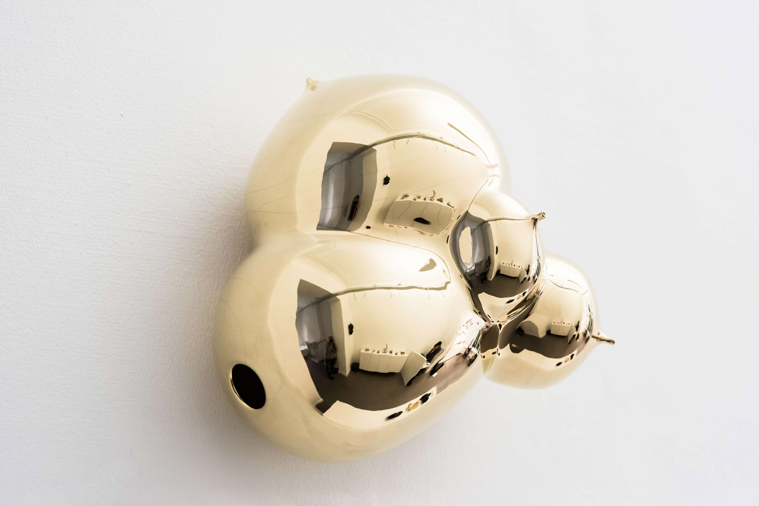 The works that make up the Tripes Series are all unique. These sculptural stoneware forms resemble the blotted forms of balloons or an intestine. The stoneware pieces are enamelled in shiny black or covered with 24k gold. Hugo Meert often evokes the eroticism associated with working with clay, which he expresses here through the “dilated” rendering of tripe. The Tripes Series was first presented in 2012 by Annette Sloth (Galerie Puls, Brussels).