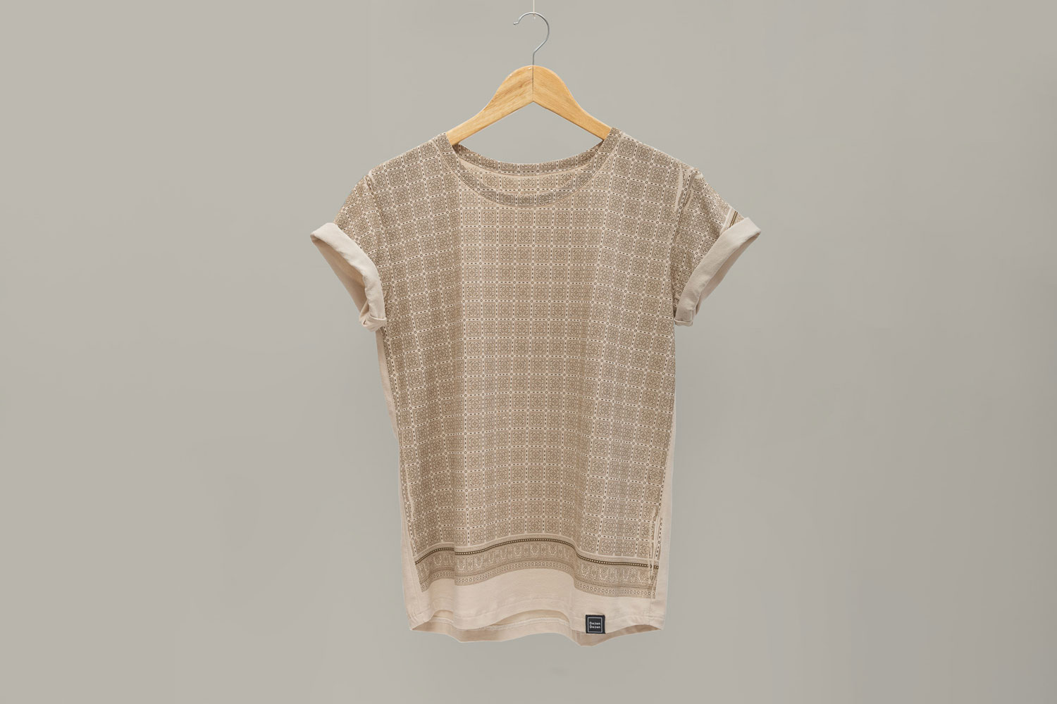 A soft and light t-shirt made of breathable, responsibly-sourced cotton. It features the brand's traditional square scarf called Labyrinth. This garment is hand printed in Dezen Dezen's Trieste workshop using the original silk-screens handed down through generations. They exclusively use OEKO-TEX certified high-quality Italian inks.