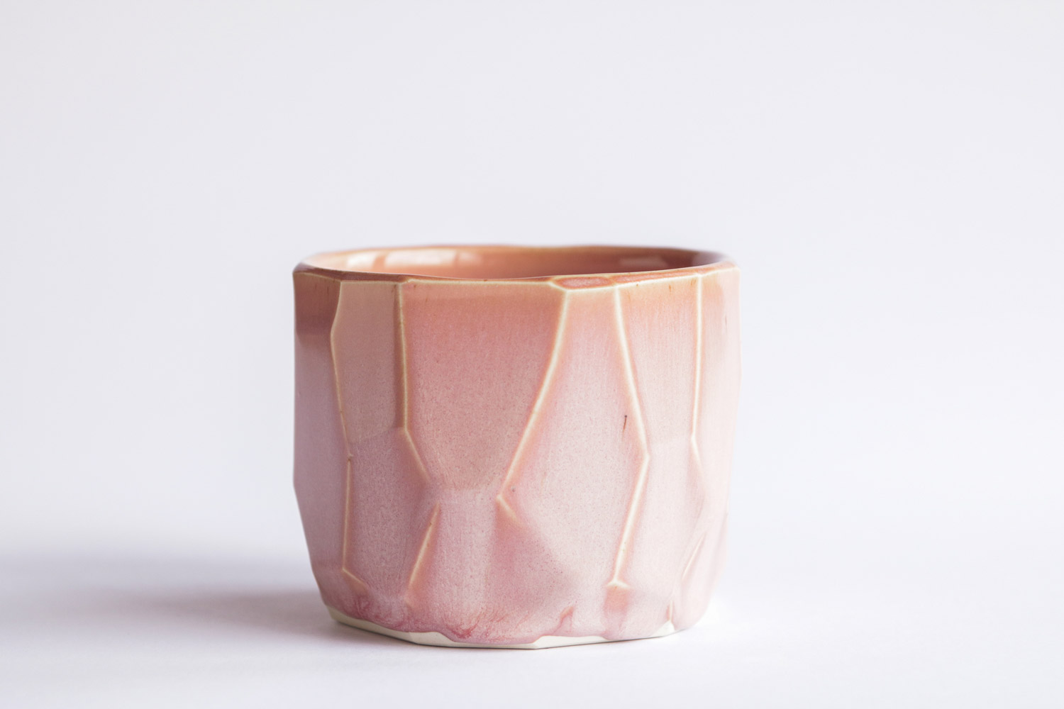 Hand thrown and individually cut stoneware cup. Pinga pieces are part of a bigger experimental series which combines the organic, circular, placid characteristic on the inside, with geometrical, structural, tectonic forms on the outside.