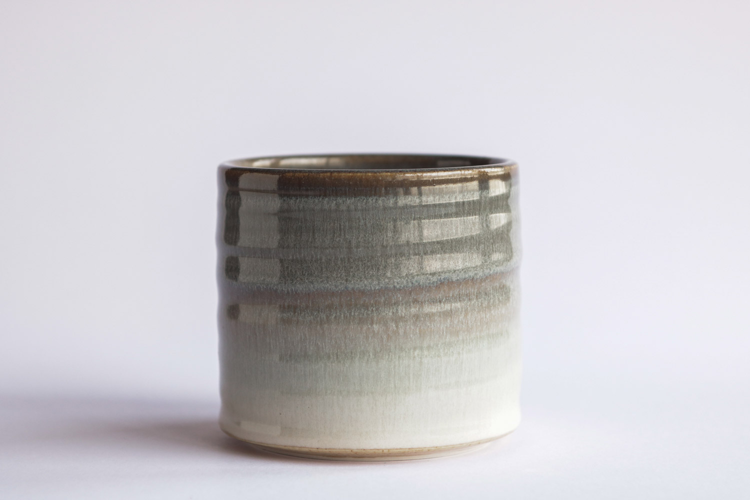 Hand thrown, stoneware cup with multi-layered gradient glazes. The piece embodies the search for balance between darkness and clearness.