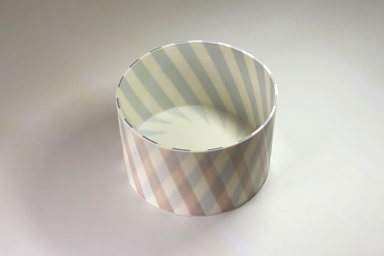 This bowl is made by hand casting and painted in between the casting layers. The rythm of unglazed and glazed surfaces gives the object a special look.