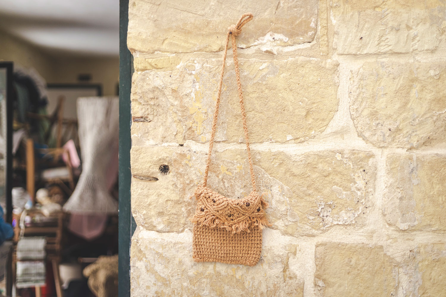 This cotton pouch was created with Alda Bugeja's students during one of her classes. The principal part of the pouch was created using a crochet technique but the flap that locks the pouch or bag has been made using macramé knots.The cotton used is very soft and good for the texture and feeling.