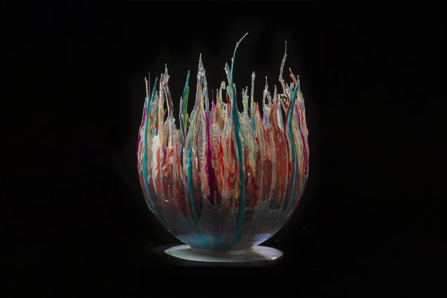 This multicolour sculptural vase was created with a multilayered silicone casting technique.
