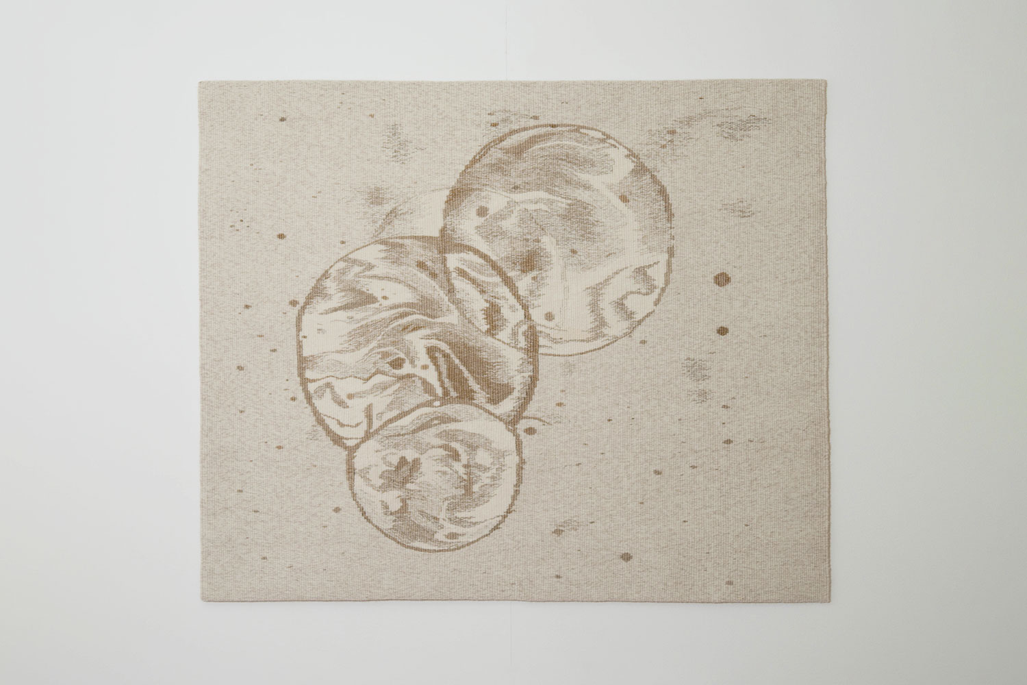 Margaret Jones is very fond of Gwendoline, her first bubble tapestry created in 2013. The tapestry is handwoven from cotton warp with wool and linen weft, and the design is intended to provoke different reactions. Whilst the image came from bubbles, every viewer brings their own interpretation.