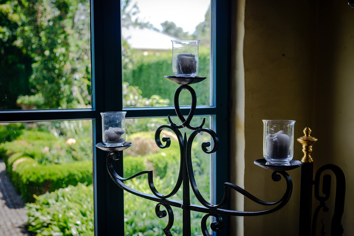 This large, forged steel, castle candlestick holder is handcrafted. The design is inspired by the Louis XIII renaissance style.