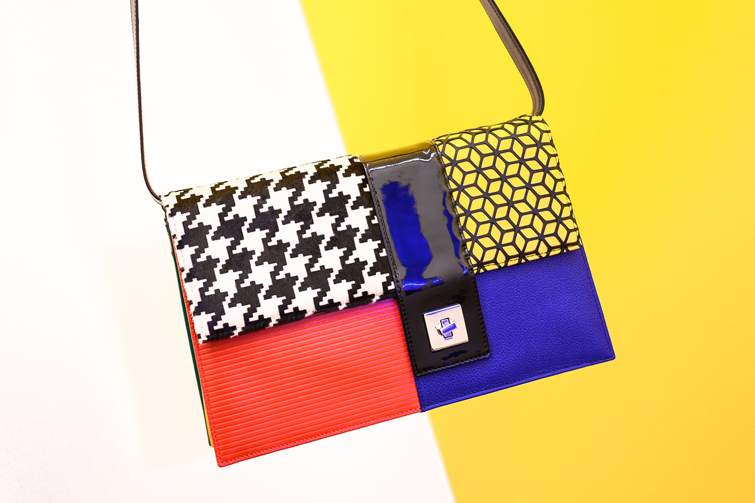 This adjustable shoulder bag from the collection called LEATHER GOODS ARE AN ART OF LIVING has a visual inspired by the Bauhaus movement. The assembly is made with four gussets, and the flap is a twist lock. The interior is composed of a divider and a zippered pocket and a mobile phone pocket.