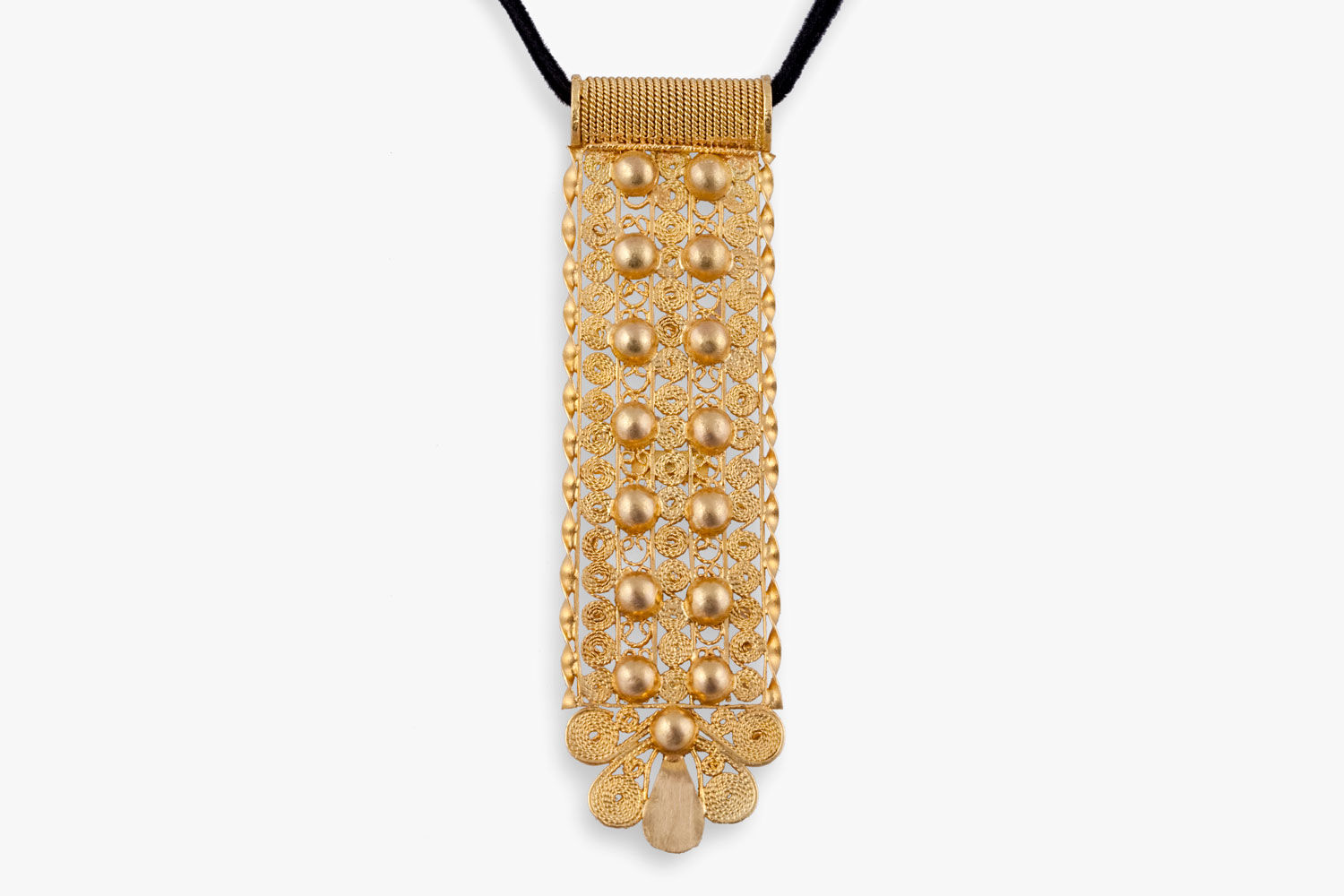 Creativity, craftsmanship and originality are the elements that make up this elegant 18kt gold pendant with a regal allure but in a contemporary design. The design of the pendant is characterised by the play of full and empty spaces typical of filigree jewels.