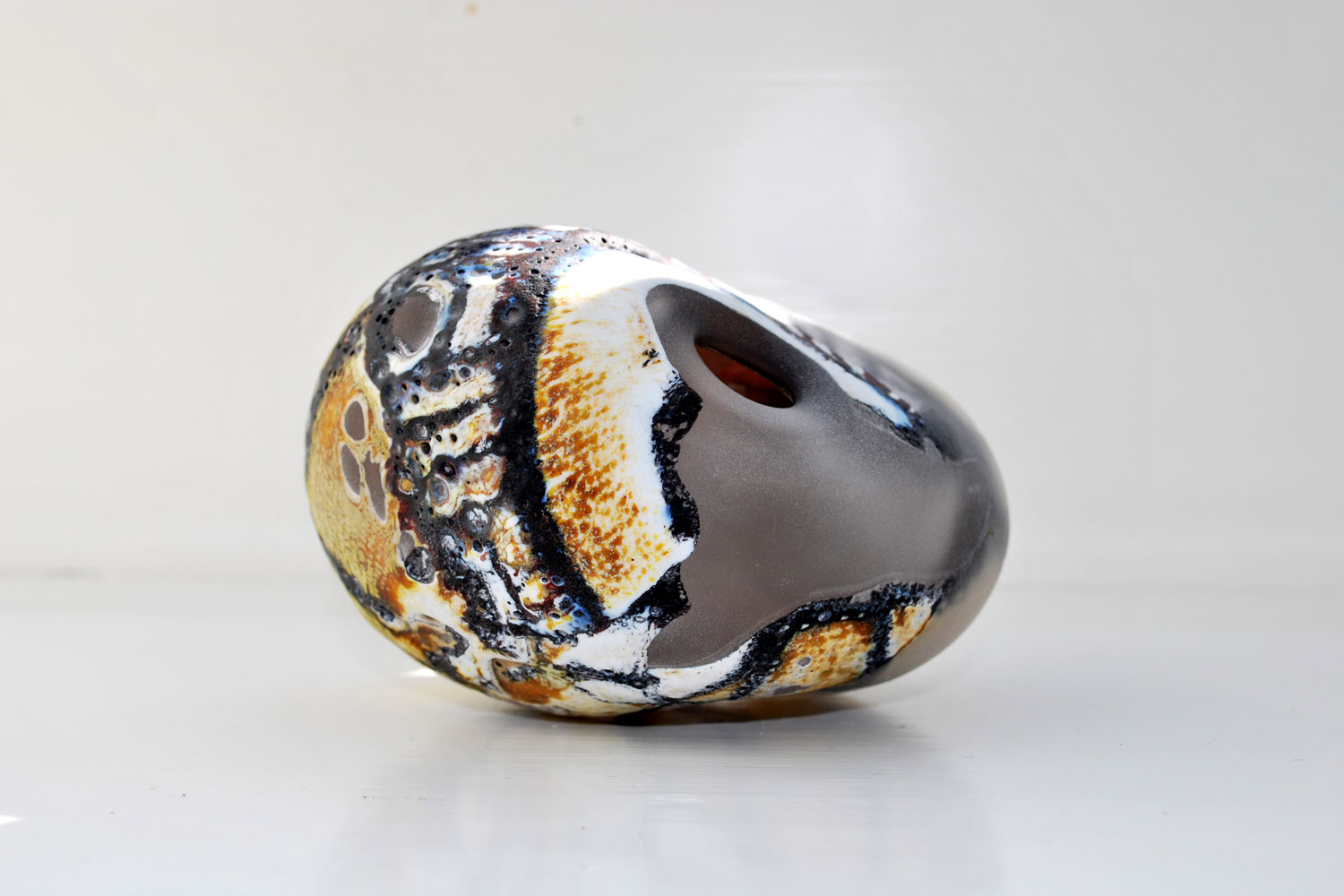 This handblown sculpture is from a series of works called Surface of Loss where Elinor achieved surprising textures by extensively altering the glass with different sifting, cutting, sandblasting, sand carving and engraving techniques. She often works with preparatory drawings depicting almost faded memories, recollected and assembled into artworks.